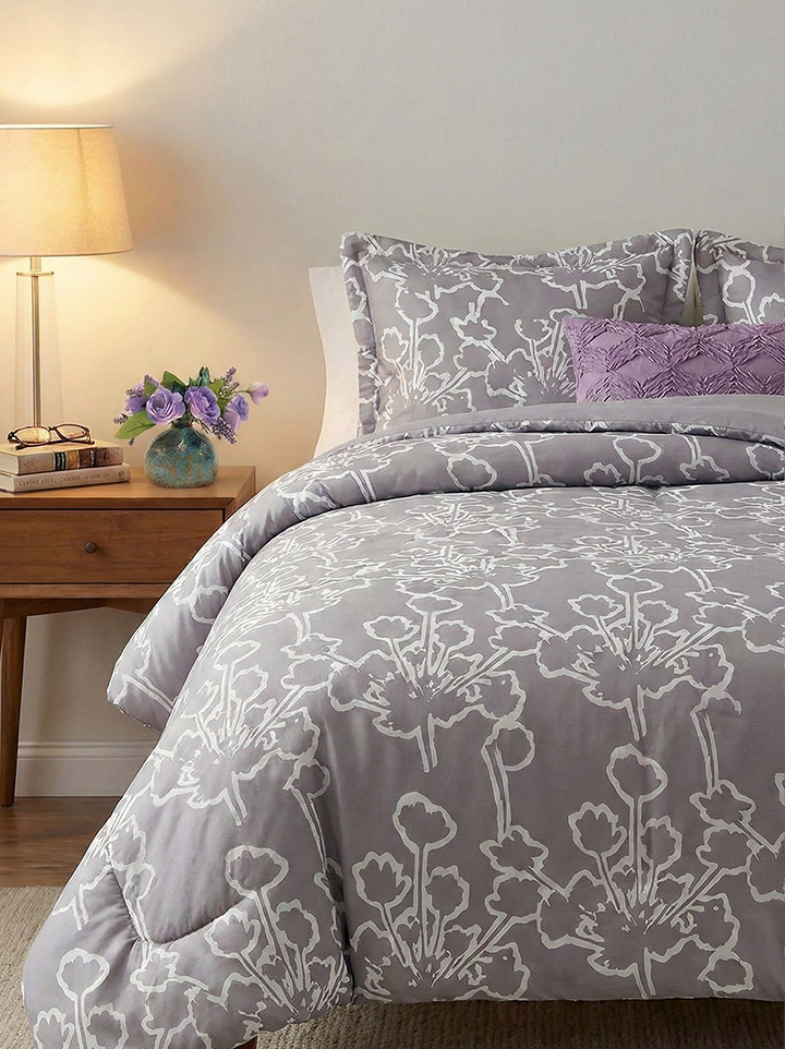 Versatile Style: Complements a variety of decor, from the subtle textures of gray floral bedding to more vibrant, contemporary accents.