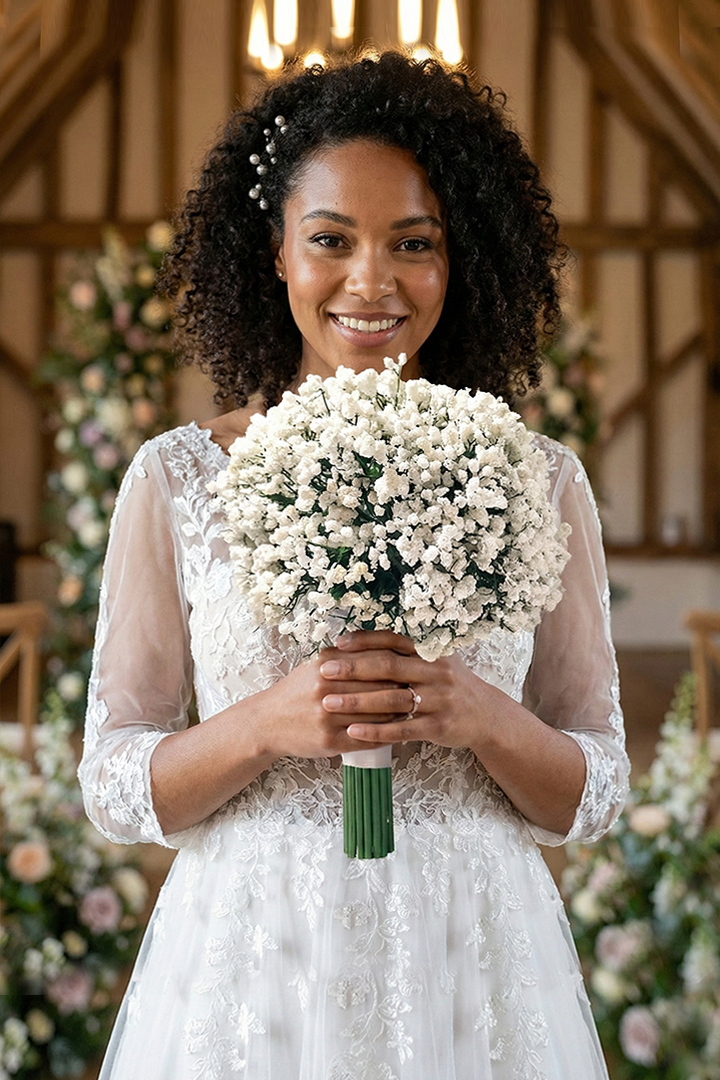 A dreamy whimsical ball of white tied with a white ribbon.